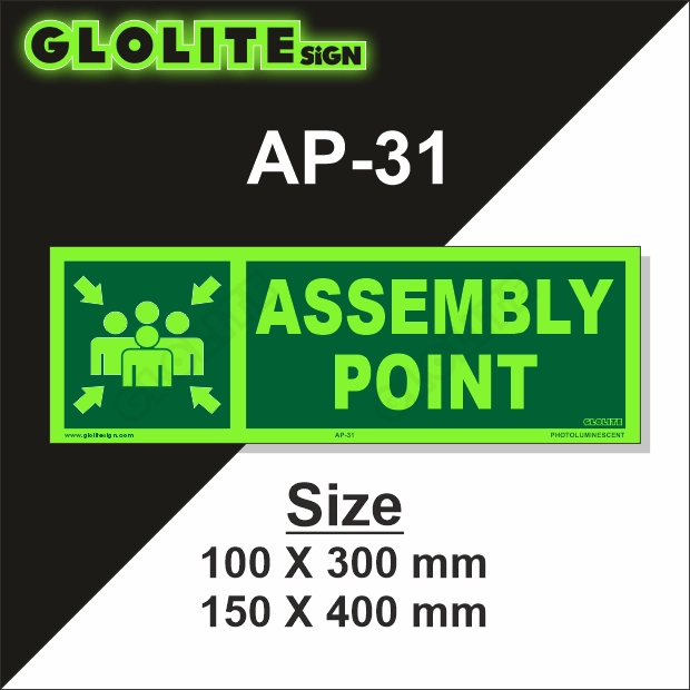 The AP-31 Assembly Point sign is manufactured using high-grade photoluminescent materials, allowing it to glow in the dark without any electrical power source. This ensures visibility even in low-light or smoke-filled environments. It features bold symbols, sharp contrast, and durable construction—making it resistant to weather, corrosion, and fading over time. The sign complies with international safety standards, is easy to install, and can be wall-mounted or fixed to poles in open areas. The design is universally understood, helping to eliminate confusion during emergencies when every second counts.