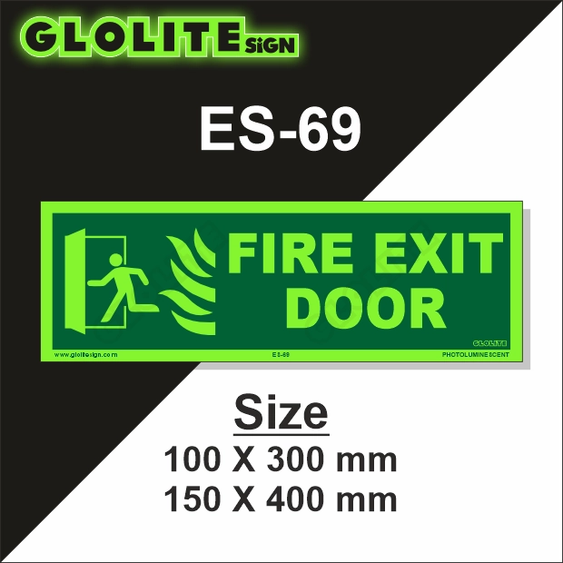 The Fire Exit Door ES-69 signage is a critical safety component designed to clearly identify designated fire exit doors in commercial, industrial, and residential buildings. With a highly legible layout and glow-in-the-dark functionality, this signage ensures that building occupants can quickly locate emergency exit doors even in low-visibility or blackout conditions. Its presence greatly reduces the chances of confusion during evacuations, guiding people to safety efficiently when every second matters.