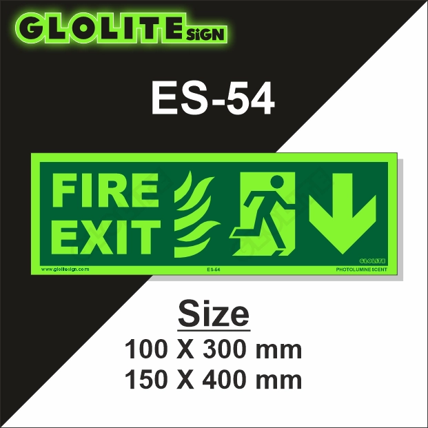 The Fire Exit ES-54 is a vital photoluminescent signage solution specifically designed to provide clear exit guidance during emergencies, especially fire-related incidents. With bold, high-contrast lettering and universally recognizable symbols, this sign ensures that even in low-light or smoke-filled environments, occupants can quickly and confidently identify the nearest fire exit. Its glow-in-the-dark capability makes it a critical component of any building’s emergency evacuation system, supporting faster and safer egress under pressure.