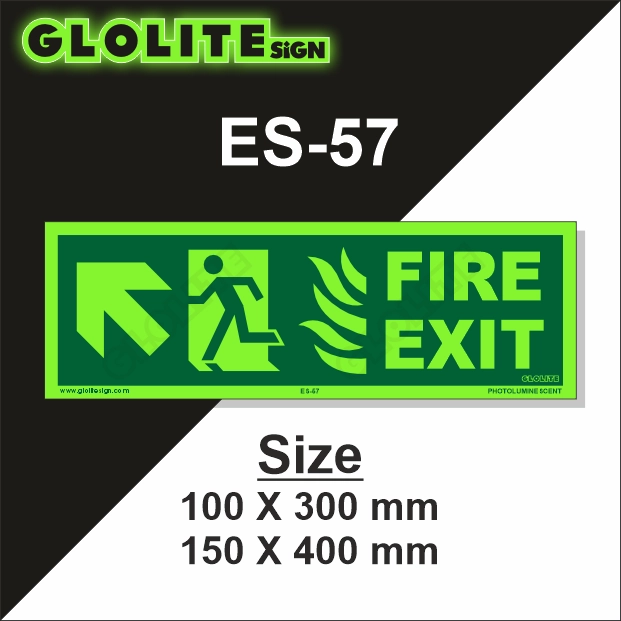 The Fire Exit ES-57 is a high-visibility photoluminescent safety sign specifically designed to indicate emergency exit routes during fire or blackout situations. Its clear and bold "FIRE EXIT" message provides unmistakable direction in environments where quick decisions are crucial. With its ability to glow brightly in darkness, this signage becomes a vital part of your facility’s emergency evacuation strategy, helping to guide people toward safety when lighting systems fail or visibility is compromised.