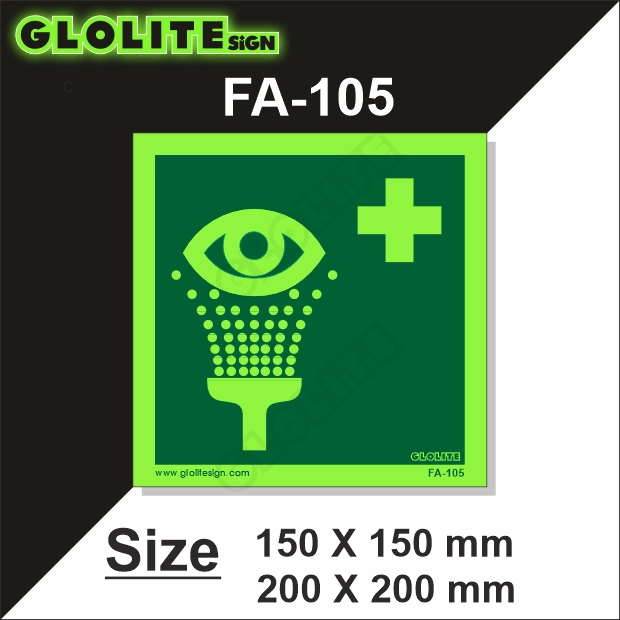 Crafted using durable, non-toxic, and non-radioactive photoluminescent materials, the FA-105 sign charges with ambient light and emits a bright glow in darkness. Its internationally recognized eye wash symbol is clear and easily identifiable, even from a distance, helping to reduce panic and delay during emergencies. The signage is resistant to moisture, chemicals, UV rays, and fire, making it perfectly suited for placement in industrial zones, laboratories, manufacturing units, and chemical plants. It’s also lightweight, easy to install, and designed to withstand both indoor and outdoor conditions, ensuring long-term usability and compliance with health and safety standards.